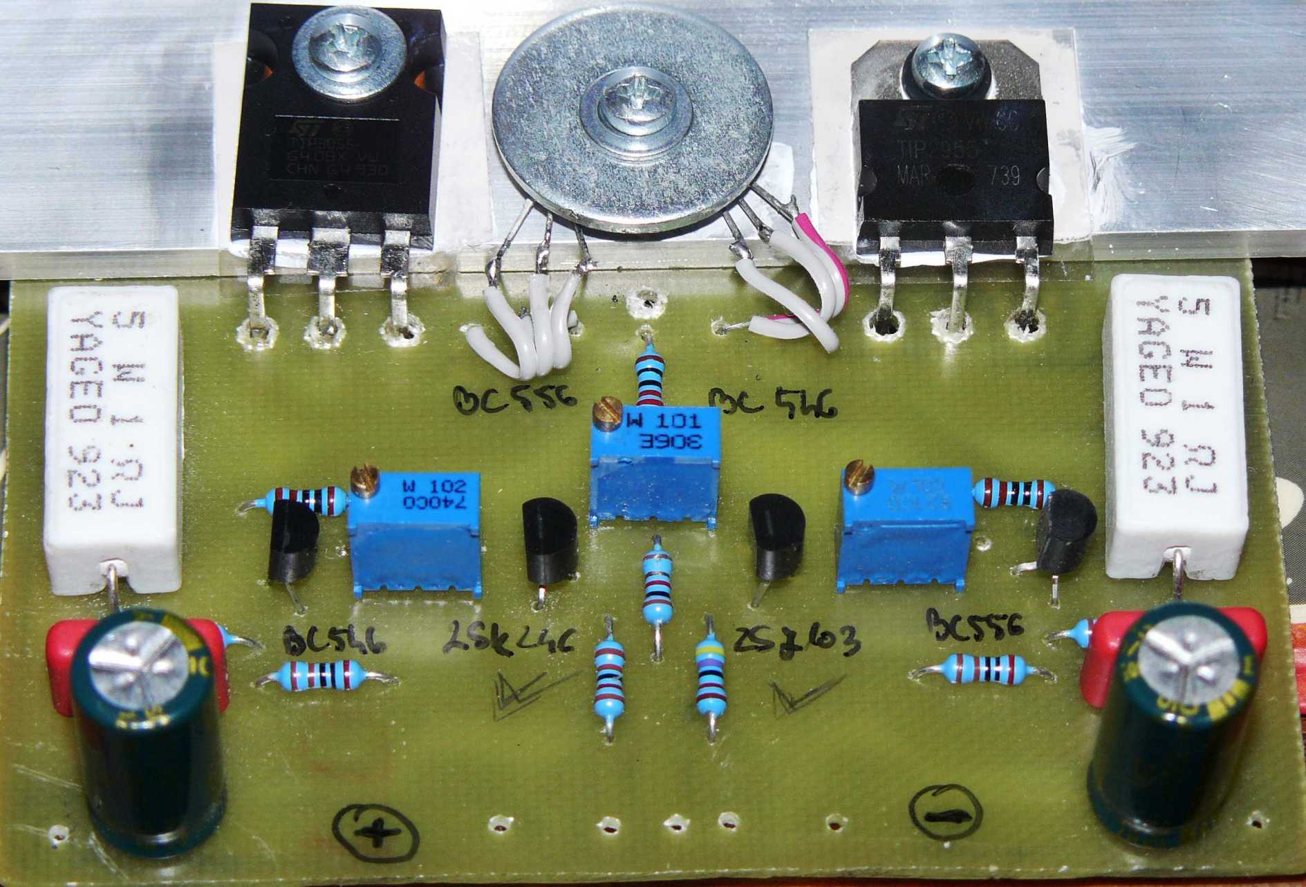 Most már értem a problémádat! De amit írtál az felvetés, ugyanis nem azért vezettem oda a vezető sávokat, hogy ne kelljen kivezetékezni, hanem, hogy ne kelljen a fél panelon áthúzni a vezetéket. Átkötést kellett volna betennem, ha helyes lábkiosztással húzgálom oda a vezető sávokat, meg az L profil éléhez csatlakozva vajmi kevés hőkontaktusa lenne a kis BC tranzisztoroknak. Azokat mindenképpen oda kéne csavarozni, és az L profil élébe nehéz menetet vágni , így nem is próbálkoztam vele, hanem egyből fölülre a lapjára tettem egy csavart és usgyí!Kellett azért egy teljes hétvége áram nélkül, hogy megemésszem ezt a problémát, de most elsőre beugrott mit is szeretnél voltaképpen.