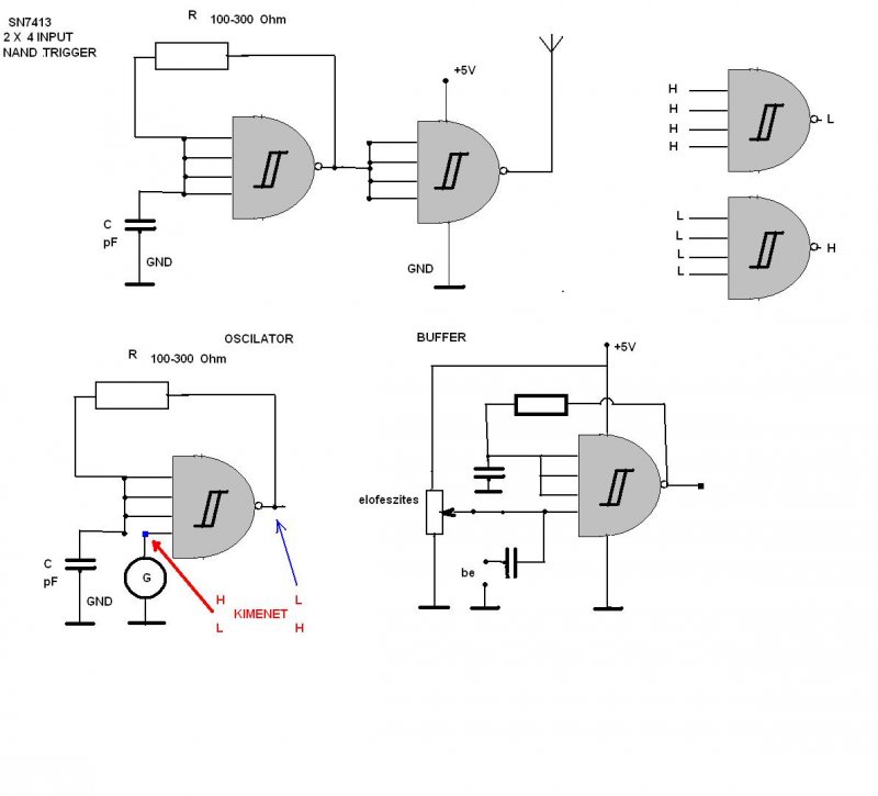 Egyébként a 7413-as IC-re épülő kapcsolást már én is megépítettem, működik rendesen. Az egy másik kérdés hogy gyakorlatilag semmire sem használható a minősége miatt. De működik, sugároz.