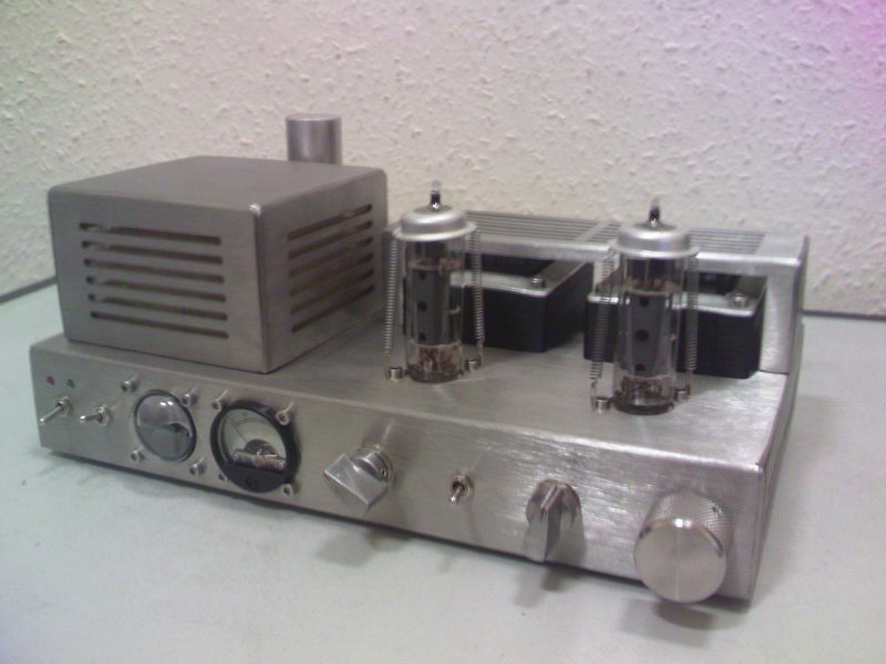 Az elmúlt két napban tevékenykedtem egy kicsit a műhelyben, és ennek eredménye képpen sikerült összehoznom egy sztereó PCL86-os csöves erősítőt. Már régebben elkészitettem ezt a kapcsolást, de az brummos volt, valszeg földhurok miatt, és nem is volt túl szép, akkor letettem róla, de most ujra a kezem ügyébe került, hát alakitottam rajta, kapott egy pofásabb dobozt, mely szerintem jól illik a kapcsolástechnikához, és a "csöves" feelinghez, mint amiben volt. Már a brummot is sikerült megszüntetni helyes földelések kialakitásával. A hangja szerintem gyönyörű szép, és mint azt többen emlitették már itt az egyes topikokban, főleg az instrumentális zenét öröm vele hallgatni. De én inkább befogom itt van pár kép róla, bocsi a kissé rossz minőségért, majd csinálok jobb képeket holnap, természetes fénynél. Elrejtettem benne egy két design elemet is.