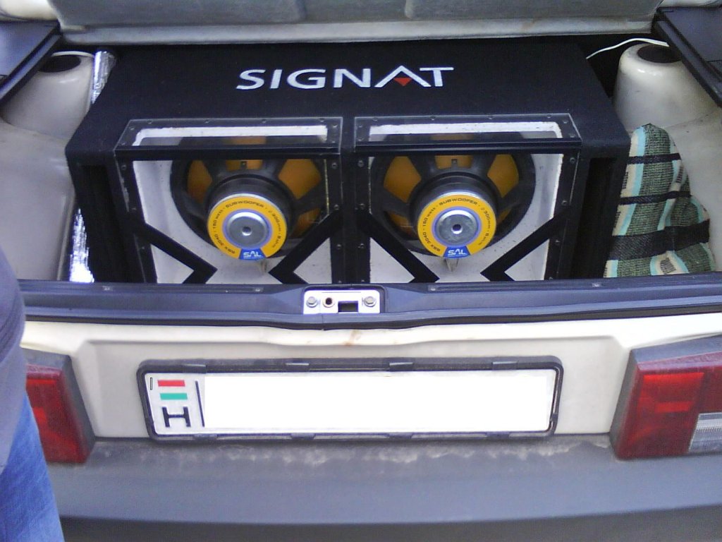 Én most regisztrálam ide a fórunba. Már régóta vannak SAL hangfalaim és hangszóróim. De most sireült elérni egy nagyon jó eredmélyt, és ezt megosztom veletek. Nem rég hozzá jutottam egy SIGNAT Fury 212 BP 12" Bandpass ládához.De csak hangszórók nélkül, maga csak a dobozhoz. Ezért vettem bele 2db SAL SBX 3040 hangszórót, ez a kevláros tipus... 8ohm-osak. Először szobában használam egy Technics szobai erősítőről ami kb. 2x80 wattos. Most már a kocsiban használom a két hangszóró párhozamosan kötve, így 4 ohm-os és egy SAL XPRO 4000 autós erősítővel hajtom hídba kötve, elvileg így papiron 250 watt-ot produkál. Az eredmény... nagyon mély hangok ki jönnek belölle, nem torzít, gyönyörű mély hang, a kocsi elég szépen rezeg És írjatok hogy nektek mi a véleményetek. Ilyen a láda eredetileg... (remélem jól linkeltem be) http://www.carhifishop.at/Signat-Fury-212-BP-12-Bandpass-Gehaeusesubwoofer