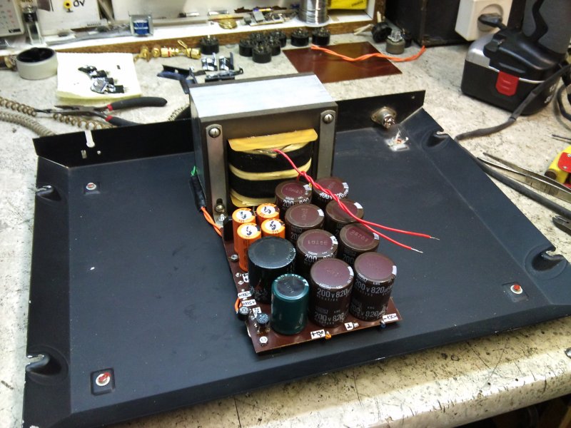 Gondolom az R8 után 22µF 400V és elé a tápegységhez 47uF(elvileg kisebb is jó,de nem árt) A trafót sztereóhoz számoltad?
