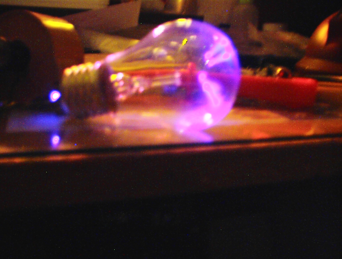A sorkimenős nagyfeszes játékom: csatolok képeket gáztöltésű izzós kísérletekkel.
