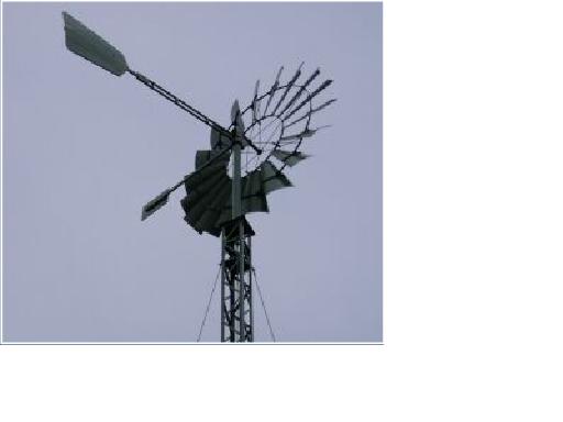 sziriusz által küldött képen (Aer 06) egy vízszintes tengelyű, axiális átömlésű, lassú járású,(2-3) és így nagy indítónyomatékú szélkerék, látszik lemezlapátokkal. A jó hatásfok feladásával,(nagy a nyomaték, nem muszáj munkapontot illeszteni, de a szükségesnél nagyobb lapát kell) a lehető legegyszerűbb kialakítással, az áramtermelés igénye nélküli szerkezet. Ha később áramot is szeretnél termelni, a gyorsabb lapátra kell majd áttérned, egyébként ez a legegyszerűbb megoldások egyike. A védelméről semmit sem tudok. A mechanikai energiát vagy az általam említett módon, vagy hidraulikusan hozhatják le a vízszivattyúhoz, a talajszintre fentről. Ha a teljesítmény-lehozatal hidraulikus, az is könnyedén mozgathatja a szivattyú membránját, és egyszerű a löketszabályzással történő munkapont illesztés is.