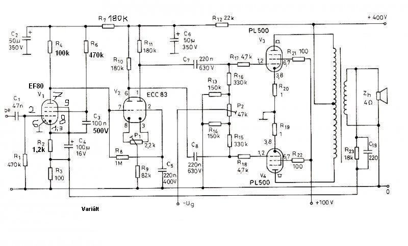 Amúgy meg valamit félreértettél, nem szól tranzisztorosan! Abszolúte ellenütemű csövesen szól! A teljesítményhatárt jelző (elfogyott a tápfesz) torzítása tranzisztoros jellegű, mert hát nem csal a kimenőtrafó... me' nincsen benne...A meghajtás 2 oda nem kellő triódával kevesebb, így meg tudtam oldani 1db kettőstriódával! Ha te tudsz profibb meghajtást /ami nem 0!/, egy darab 6H8C-vel, akkor várom a profibb hozzászólásod! Melléklet: Az eredeti kapcs. doc-ban 2x150v-ról. No és az én 500w-os hálózatim. Nem túl "Eco" a cucc, 2x 20w-ért 500w-os traffancs...