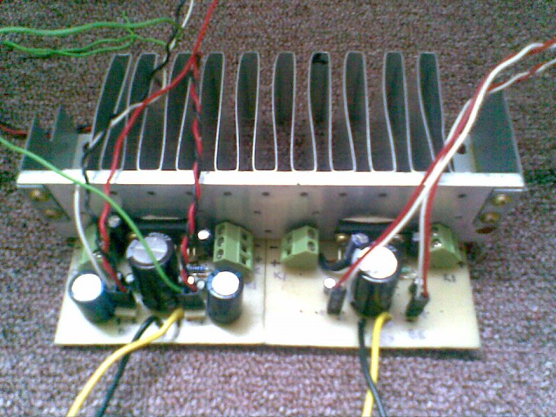 Sziasztok! Megépítettem az itt található kapcsolást kitünően működött, a mai napig. Fogta magát és eldurran a 2200µF- kondi, betudtam annak hogy csak 16V-os, mert kicseréltem egy másik 16V-os ra és az is eldurrant. Most bettem egy 40V-osat az már bírja. De sajnos azóta meg sem nyikkan az erősítő. Nem értem mi lehet a baj, és hogy miért durrant el. Gondoltam hogy a tápon lévő graetz híd ment tönkre mert elég forró volt, és ez nyírta ki a kondit is. Van valakinek valami ötlete? Esetleg ki lehet mérni valahogy az IC-t? (Azért nem készítettem képet mert egy működő panelról volt szó , még az a furcsa jelenség van hogy párhuzamosan volt a tápra kötve egy pici ventillátor. amíg szépen működött az erősítő addig szépen lassan halkan pörgött, de most majd el repül annyira pörög. illetve a saját tápjáról működöt, most meg semmi, azonban ha egy stabil kapcsoló üzeműre kötön a négyből két csatorna halkan de szól