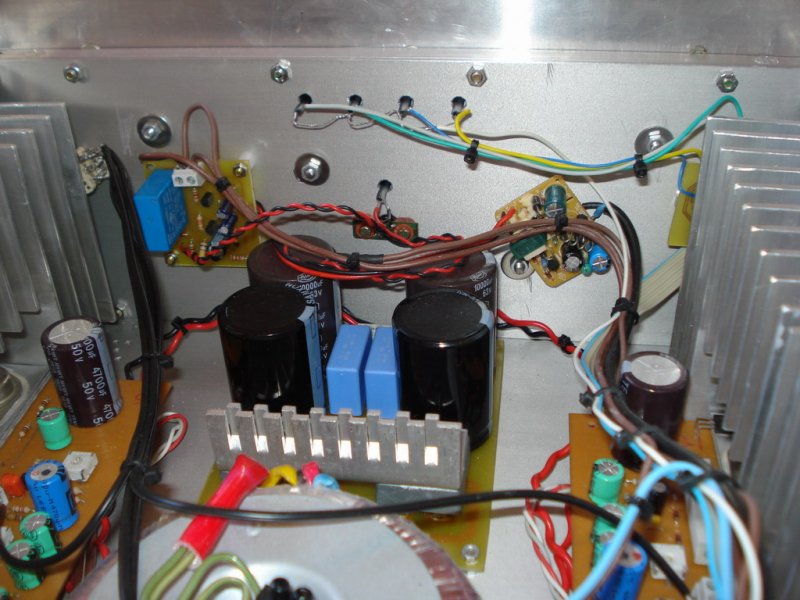 Köszönet a degítőknek a felmerült problémák megoldásában! Főbb paraméterei: -A osztályú (ebbe a topicban fölös is írnom) -Tuningolt verzió 2x3 végtranzisztora lett kibővítve (MJ15003) -Megjahtótranzisztorok MJE15030 -Tápfeszültsége :40 volt 4*4700µF szűrt táp -1.7 A nyugalmi áram egynelőre passzív hűtéssel de egy kis aktív hűtés elfér rá... -400W 230/30 volt Toroid transzformátor -bekapcsoláskor késleltetee hangfalátváltás hangszórókilökéscsillapítással (másik erősítő kibemente csatlakoztatható és alapállapotban az van a kimeneten bekopcsolás után vált át ~3s késleltetéssel mialatt feltöltődik a kondenzátor így nem jelenik meg a hangfal rákapcsolásakor a kondenzátor feltöltődéséből adódó hangszóró kilökő inpulzus -kimenős kondenzátor : 1x 4700µF elco + 1x 10µF MKT A hangja megítélésem szerint remek nagyon szeretem közép és mély tartománya nagyon szépen szól. És mellékelek néhány képet. és további kommentben