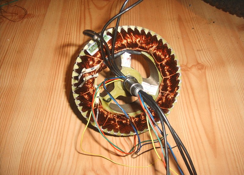Bocsánat,kezdő vagyok,most került hozzám a bicó.Elméletileg Tornado tipusú,de nem vagyok benne biztos.Képen próbálom mellékelni.36 v-os,sajna nem tudom hány wattos.A motorba 3 vastag/zöld,kék,sárga/,és 5 vékony megy be.Az 5 vékony egy csatiban van.Az áram ki-be,arra gondoltam,hogy a vezérlésbe bemegy,és kifelé is mérhető.Teljesen szét lett szedve,még a motor is ki lett szedve a házból.Nem forog meg,sem lökésre,sem semmire.Kikapcsolva,és áram alatt is könnyen forog.Van piaci multiméterem