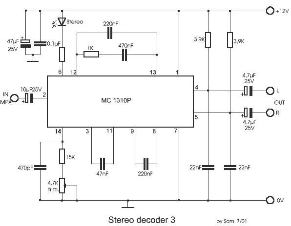 Van egy CD9088 IC-vel felépített rádióm. Egy régi tekergetős autórádióba szeretném berakni. Egy kicsit átalakítottam, hogy nem gombnyomásra váltson állomást, hanem egy trimmerrel lehet az állomásokat változtatni. Eddig nincs is gond, ez így működik. A probléma ott van, hogy stereora szeretném megcsinálni. Egy A290D (=MC1310P) IC-vel építettem egy stereo dekódert. Valami miatt nem működik. 2 IC-m van, az egyiknél folyamatosan világít a led, a másiknál viszont soha, és én nem hallok különbséget a mono és az állítólagos stereo között. Szkópon mértem a 10-es lábon a frekvenciát, és akkor lett 19kHz, ha 33kΩ-os ellenállást és 10kΩ-os trimmert tettem be a 14-es lábra, ez duplája annak, ami a kapcsoláson szerepel. Annál az IC-nél, amelyiknél folyamatosan világít a led egy halk sípolást is lehet hallani az adás mellett, és változik a frekvenciája, ahogy tekerem a trimmert. Ez a hang csak akkor hallatszik, ha a rádió is be van kapcsolva. Tudna nekem valaki segíteni abban, hogy vajon miért nem működik? Gond lehet az, hogy az IC kivételével bontott alkatrészekből építettem meg? Vagy a rádió eleve kiszűri a 19kHz-es jelet az adásból? Itt az adatlap