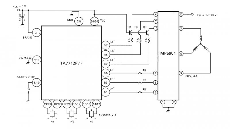 Az a 80V/4A a motor, ill az IC maximális teljesítményére vonatkozik. Természetesen, itt nem lesznek ekkora áramok, és főleg nem ekkora feszültségek a majd épülő külső áramkörön. Azok az IC-k, amiket felsoroltál, nem feltétlenül szükségesek a megható működéséhez. Talán a TA76494, mint PWM szabályozó áramkör még szóba jöhet. Szerintem, ha ragaszkodsz a TA7712P IC-hez, teljesen át kell tervezni a hozzá kapcsolódó külső áramkört FET-es végfokra. Ennek az illesztése sem olyan egyszerű feladat, alaposan át kell hozzá tanulmányozni az adatlapját. A tranzisztoros áramköri részt ez esetben el lehet felejteni.