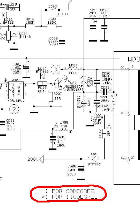 Őszintén megvallva, nem tudom melyik pozíció számú volt, egy 470pF 2kV os kondi, az a baj, hogy a rajz kicsit más mint a készülék, bár a sassziszám egyezik, de kicsit máshogy volt a készülékben, például a rajzon csillagozott alkatrészek, a sormeghajtásnál, egyszerüen nem voltak benne, a sorkimenő trafó 3-as lába például nem ment sehová, a DD07 és 08-as diódák is hiányoztak a sassziról, ez biztos valami lite verziós sasszi, de a trafó 1-2 es lába körül van. Véletlen sikerült megtalálni, de szerencsére megvan.
