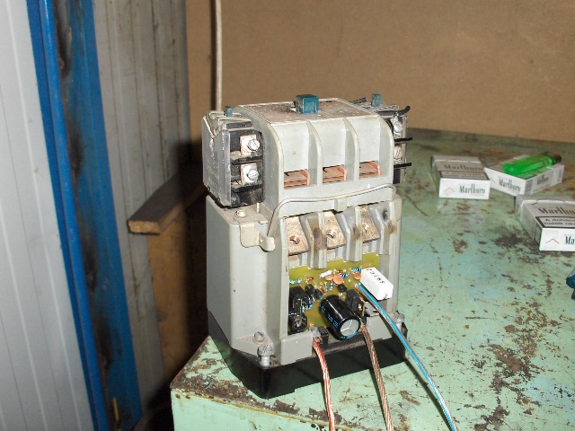 A berántás most úgy van megoldva hogy a mágneskapcsoló segédérintkezője berántás után megszakitja a közvetlen 48V-ot amit egy 2.5ohm os ellenálláson kap meg.Tökélletesen működik mert a segédérintkező előbb szakit mint ahogy teljesen összezárna a mágneskapcsoló viszont a lendület tovább viszi a járomot ami igy nem egy eszeveszett kalapácsütéssel zár.Szerintem ez igy maradhat véglegesnek,de azért még nyúzom egy kicsit.