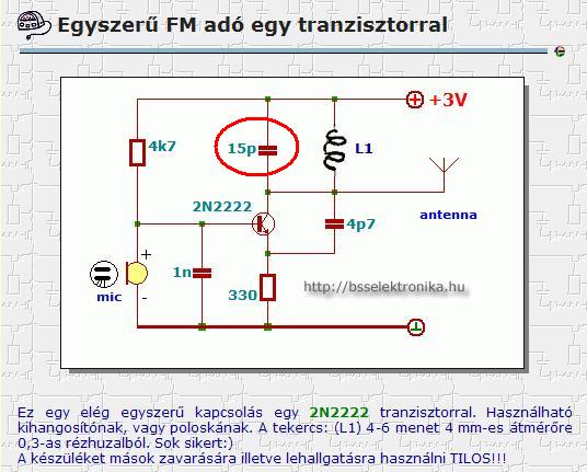 Megépítettem ezt. L1-et 5 menetesre csináltam. Tápnak szűrt, stabil 5V-ot kötöttem rá. (labortáp) Az antenna kicsit több mint 30 cm, 3 db összeforrasztott kábeldarab. A 2N2222 helyett BC547-et használtam, az nem baj ugye? (Azt írták, hogy az is jó lehet bele) A "Kezdő kérdések"-ből ide lettem továbbítva, szeretném a segítségeteket kérni, mert a mobilommal, hifimmel, sőt még a "hagyományos tekergetős" ébresztőórámmal sem sikerült megtalálni az adást. Elvileg 88-tól 108 MHz-ig bárhol lehet. Nem lehetne ezt kicsit leszűkíteni valahogy? És hogy tudom kipróbálni, hogy működik -e egyáltalán (sugároz -e adást)