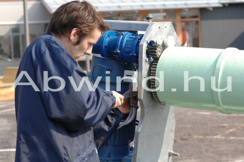 Az 5 m-es szélkerékre először két lapátot teszek fel. Azután a harmadikat. Miután kitapasztaltam a gyenge pontokat és kijavítottam, jöhet a következő három. A szélirányba állító mechanikája még nem teljesen kidolgozott. Egy másik szélerőmű adja az áramot annak a motornak, ami szélirányba állítja. Egy – két ötlet jól jönne, és meg is köszönném.