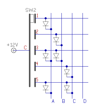 Ez a kapcsolás, egy BCD kódolású kapcsolóhoz készült. Ha neked Jaxley kapcsolód van, az decimális kódolásnak felel meg. De ugyan úgy átalakítható diódákkal. Kevesebb dióda, több ellenállás + IC. (Természetesen ha több állás is van az is könnyedén megvalósítható.) üdv! proli007