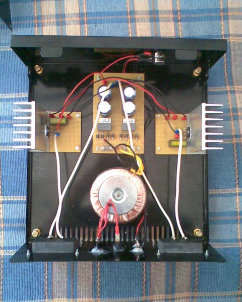 Legújabb erősítőm, 2db lm3875-el épített gainclone. 3 A osztályos után ez vált be eddig a legjobban. Se búgás, se gerjedés és nekem nagyon tetsző hang, bár még járatósak a kábelek.