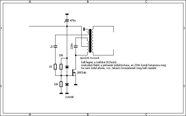 Ha mégis működne, a trafó telített üzemű, a fet meghajtása pedig elég gyenge, ami a rezonáns módban persze sokkal kevésbé káros mint kemény kapcsolás esetén. Itt D1-nek a test-dióda is megfelelne.