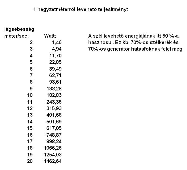 Használjuk fel az infót belőle: Optimális fordulatszáma ( 1/min) : 4,2*v(m/s). A magyar szélviszonyoknál szerintem a 2,5-8 m/sec-os szélsebesség tartományra érdemes tervezni (szóljatok ha rosszul gondolom). Melléklek egy táblázatot az 1 négyzetméterről levehető teljesítményről. Ez alapján az árusított szélkerék még jó is lehet számodra, mert a hasznos felülete kb. 4 négyzetméter.