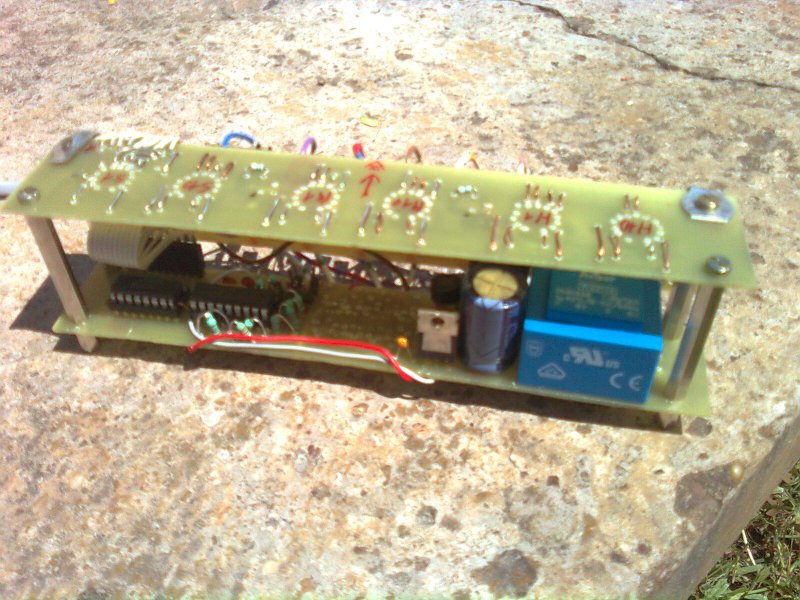 Helló mindenki! Végre sikerült összeraknom az "óraszerkezetet" Már csak a futárt kell várnom kedden a csövekkel. Sajnos a tranzisztorokat külön nyákra kellett raknom, mert életemben először csináltam nyákot és az a zsúfolt rész borzasztóan nem sikerült...