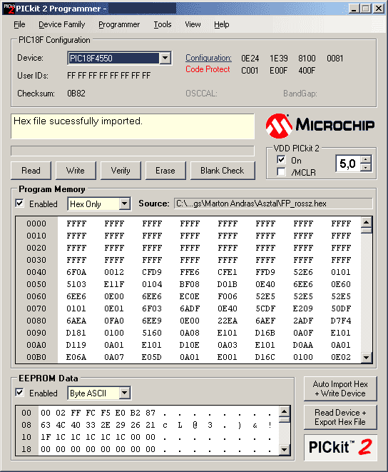A gondom most az, hogy a PIC-kel nem csinál semmit(nem észleli és nem is égeti be), de szerintem azért, mert az én gépemen a rossz párhuzamos port miatt meghalhatott...
