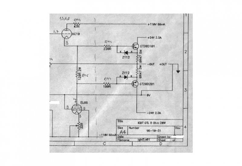 Ez rendben van, csak azt elfelejtettem említeni, hogy pont a nagy kapacitás miatt a csöves meghajtó és a végfetek közöt nagyáramú (30 mA) emitterkövető is van BD 139/140-ből. És azon is visszahatott.