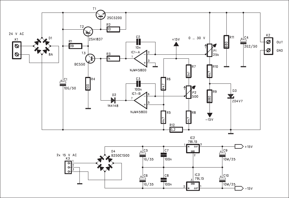 Ez egyszerűnek egyszerű. De hogy megbízható, hát azt nem tudom.Egy kis módosítás után megépítem és tesztelem. A tranyók elég furcsák nekem... Nekem vannak 2N3055 ösök, meg BD711 esek. Ezekkel fogom megépíteni, de módosítást igényel.