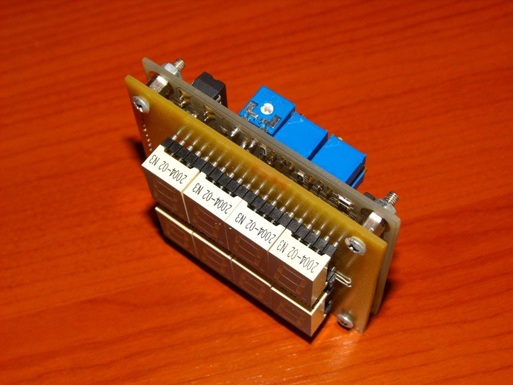 Rajzoljak is v. elég így szóban? Idézet: „Feleslegesnek tartom, hogy egy panel legyen annyira univerzális, hogy ugyanaz tudja a LED kijelzős megjelenítést és az LCD-st is.” Szerintem is felesleges. Én direkt csak LED kijelzőket akartam és amikor már a program teljesen készen volt, akkor jött az ötlet hogy miért ne tudjon LCD-t is kezelni. Ez csak úgymond a panelmérő "meghackelése". Hardveresen az égegyadta világon semmi különbség nincs az LCD és a LED kijelzős változat közt. A különbség csak a PIC belsejében lévő programban van. Max annyit tapasztalsz belőle hogy mondjuk nem 200ms alatt tudod beégetni a PIC-et hanem a kicsit nagyobb program miatt mondjuk 210ms alatt. Idézet: „a hamlin relék helyett tehettél volna valami egyszerű, miniatűr relét” Miért, van ennél kisebb? (Kapható is?) Idézet: „Nem szimpatikus a derékszöges elrendezés sem, lehetett volna szendvics szerűen is.” Ezt honnan veszed? Direkt kértem hogy aki elolvasta a PIC-es panelmérőm cikkjét vagy megnézte a róla készült videót, csak az írjon véleményt! Ezt a derékszöges dolgot nem tudom honnan vetted, a két panel 4db 5mm-es távtartóval kapcsolódik egymáshoz és a két panel párhuzamosan van, azaz 'szendvics' elrendezésben. De mutatok is neked egy képet: Szerk.: Ja jól van.