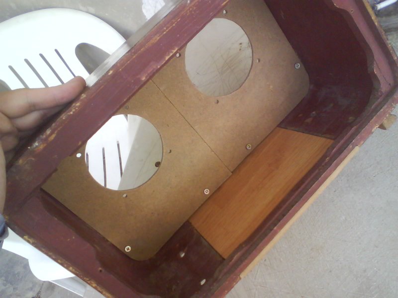 Ez egyenlőre még csak egy doboz amibe 2 db (,,120") wattos hangszóró lesz belerakva . Amihez még keresek egy kb 2x40 wattos erősítőt és kivezérlésjelzőt. A doboz egy 1960 körüli rádió volt.