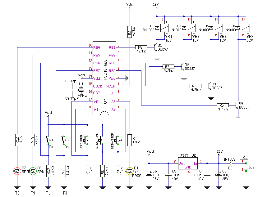 Közben elkészült egy PIC*es verzió is. Működik, de elég lenne benne egy 16F628 vagy 16F84A is csak éppen 16F876 van. Az meg pazarlás..
