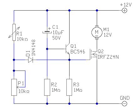 - Egy dióda rákötése R2 ellenállásra (katód a +12V felé)