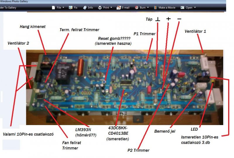 Ért valaki ehhez a típusú nyers, szűz erősítőhöz? GPA-800. Van rajta 3db olyan csatlakozó, mint az alaplapokon szokott lenni, ha (soros portot kötnél rá 10 tüskés) foglalat. Amikor vettem még adtak hozzá egy ún: ventilátor áramköri rajzot csak valahova elkeveredett. Állítólag anélkül be se kapcsol. Nos nem értem mert van rajta a +/- tápon kívül még +12V (gondolom relé) és még +18V nem tudom most az mi.... mert nincs oda írva. Van rajta "Term" feliratú poti, "Fan" feliratú, P1, és P2 feliratú is. Meg vagy 2db IC is. Amúgy MJL21193/94 párok összesen 14 darab van rajta. Elvileg 800Wattos. Zavar, hogy nem tudom mi az a +18V ??? Túl van bonyolítva az egész.... Nincs megjelölve hogy a csatlakozón azon a 3db 10 tüskés mi lehet?? De egyébként ami kell az ott van>> Jel be, Hang ki, Táp +/- és 0, csak a többi kivezetéseket nem tudom mik lehetnek? Valószínű létfontos ehhez a panelhez még külön egy külső +18V-os ventilátor áramkör létesítése? Kell ez egyáltalán? Mégis miért van 2db 2 tüskés fan csatlakozó már maga a panelen? Nem értek semmit. Jah és még egy LED is csillog az elején ha ventilátor működik... (elvileg) Jó lenne megtudni bocsi ha hosszú voltam Üdv!