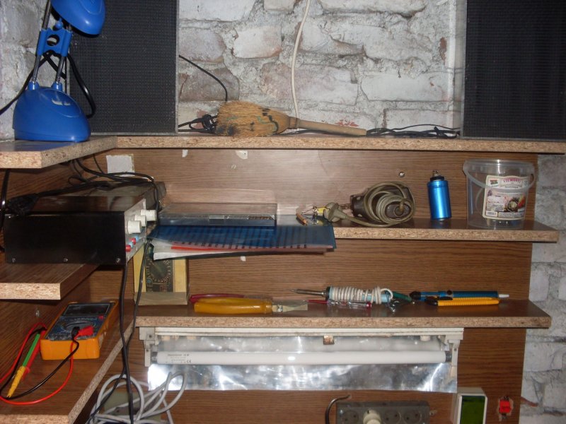 Egyébként igen, minden műhely egyedi, alkalmazkodik a "gazdájához" meg a körülményekhez. Én most tartok ott, hogy az asztalomra leszabok egy rendes polcot, így gyakorlatilag lesz egy plusz szint a műszereknek. Nekem is szűkös a helyem és van egy baromi nagy és nehéz EMG szkópom, ami miatt az asztalomat nem tudom kihasználni. Hányódik itt két régi keményfa szekrényajtó, majd abból megcsinálom. Csak persze úgy kéne, hogy a kis "édes" 25 kilója alatt ne rogyjon össze az egész... Én is szeretem a kihívásokat, mi?