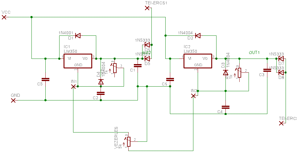 Van egy kis problémám! Építettem egy vezérlést egy ős régi úthengerbe! LM350-es IC-t használtam... Asztalon minden tökéletes, de ha beleteszem a gépbe, akkor elkezd ugrálini az elektrónika! AZAZ mind a kimeneti, mind a bemeneti feszültség leesik egy pillanatra, majd azonnal vissza is jönn! Lehet, hogy a probléma egyszerű, de sajna és én nem tudom megoldani, kérlek segítsetek, ha tudtok! Köszönöm előrre is! Csatoltam a kapcsolási rajzot!