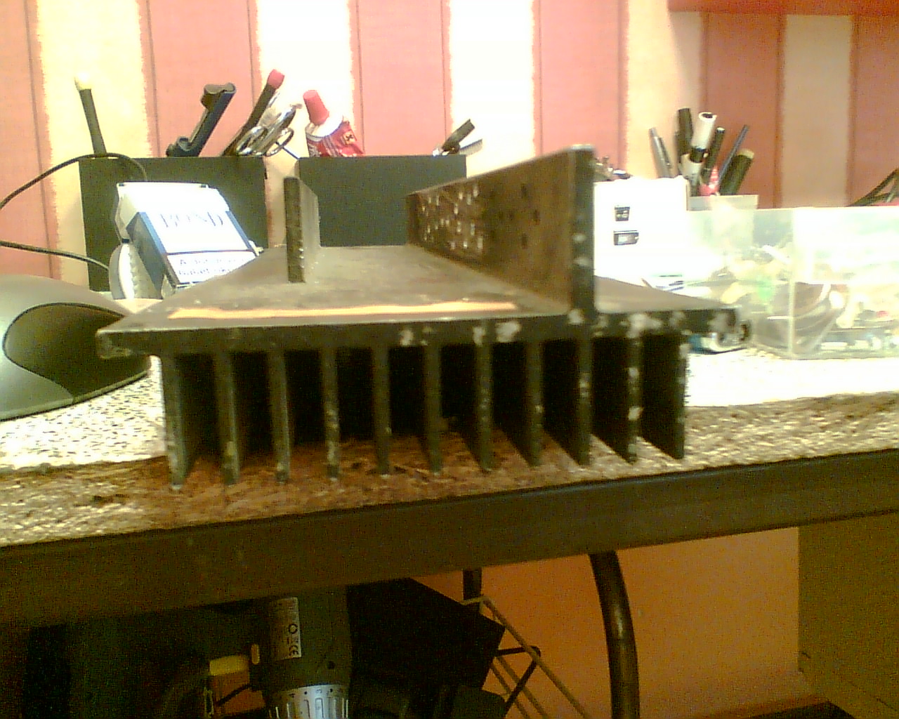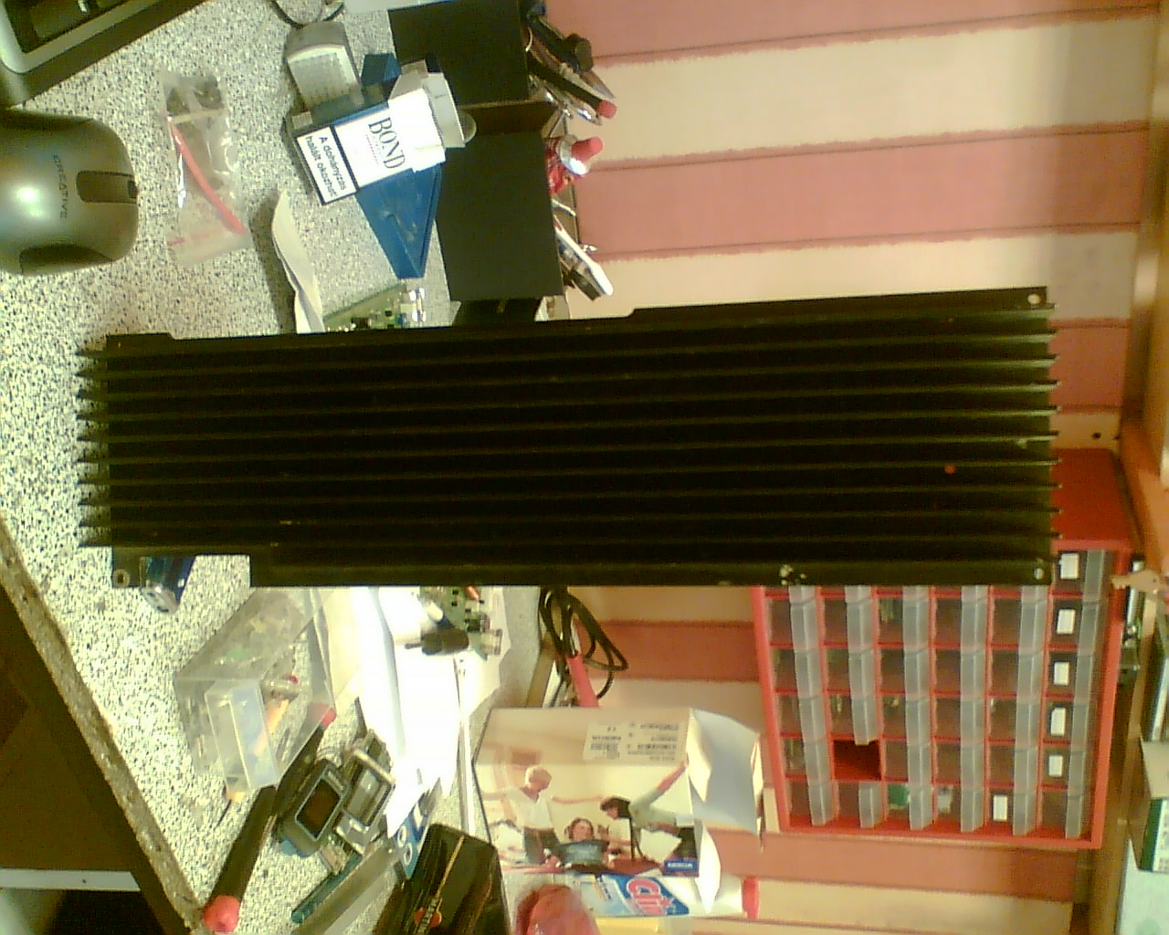 Előszöris köszönöm a dícséreteket! A fesz átvitelét a forgórészre úgy oldottam meg, hogy a videófejben lévő, eredetileg jeltovábbítása való tekercseket használtam fel. 4fejes volt a videó, az összes tekercset mind a primer mind a szekunder oldalon sorba kötötem. Hatásfokáról csak annyit, hogy sokkal jobb mint egy kézzel tekercselt trafó. A ventillátoros változatot is megépítettem még korábban (már szét is szedtem), így tudom mihez viszonyítani. A motor vezérlése az eredeti, a videó paneljából vágtam azt ki, bár megjegyezném, hogy vannak olyan videófej motorok, amiken gyárilag a motorra van szerelve a meghajtó áramkör. Na ez nem olyan volt, a panelról kivágott vezérlő van takonypisztollyal a tartó fémre ragasztva. Szervójelet nem kap a vezérlés, szimplán adtam neki tápot, és megy. (Ha ez más motornál mégsem menne, akkor 9V-ot a szervó bemenetre, és úgy mennie kell.) Maximális feszt - 18V - adtam neki, hogy a lehető leggyorsabban pörögjön, de rá kellett tennem az ic-re egy kis öntapadós bordát, amit még régen vmi videókártya tuning-készlethez kaptam. Nemtudom, melyik lenne az, de egyik borda sem incompos. A bázis bedobozolására sajnos semmi ötletem sincs, nekem egyenlőre jó így, de ha van valakinek ötlete rá, szívesen fogadom. (az áramkör 5,5cm x 18cm, és olyan 4cm magas.