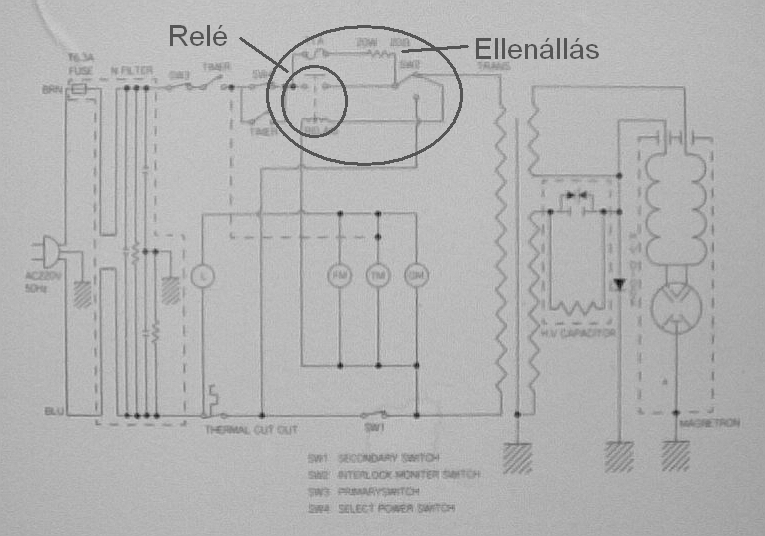 Ha ez a kapcsoló nem működik, akkor az ellenállás bennmarad a körben, melegszik mint atom, ráadásul a magnetron nem tud teljes üzemben dolgozni.
