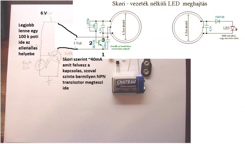 Én egész egyszerűen az adót az alkonykapcsoló LED-je helyére tenném, az ellenállást kihagyva, és csökkenteném a tápot 6V-ra. És lehet a 2N4401 helyére se ártana egy másik tranzisztor. A 100k ohm -os ellenállás értékeivel meg "lehet játszani".