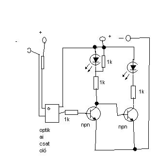 Galvanikus leválasztás fontos VS1-VS2 között? A megoldás egyszerű. Az egyik LED-del sorbakötsz egy PNP tranzisztort (BC212)(kollektora a LED anódjára, emittere a VS1 +-ra). Bázis és VS1 GND közé 100k ellenállat. A bázis pedig a másik LED-del együtt a kapcsolóra. VS2 szükségtelenné válik ezzel. Ha galvanikusan leválasztott dolog kell és VS2 nem hagytahtó ki, akkor optocsatolóval lehet bohóckodni, de ott célszerű hozzányúlni a LED-ek elrendezéséhez (ehhez jó lenne tudni, hogy mennyire fix így a dolog).