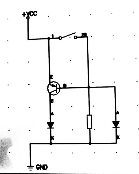 Ha ugy érted, hogy a táp és a kapcsoló közötti szakaszra akkor folyamatosan világítani fog. Ha a kapcsolót zárod a másik kialszik. És ez akkor is világít. ebben az esetben a két led váltja egymást. (én készenlétjelzőnek használom ezt a kapcsolást DUO leddel) Ja a második ellenállás nem kell oda (zöld led anód illetve a bázis közzé), mert a tranyónál is van egy. (az értékeket csak odaböktem, elvileg saját felhasználásra készült)