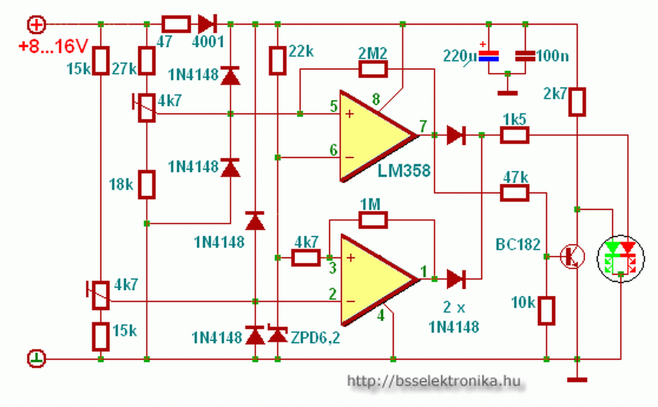 Szükség van még a zenerek áramkorlátozásához egy ellenállásra(trimmerre),ami billenési szint beállításra is jó-kis mértékben.
