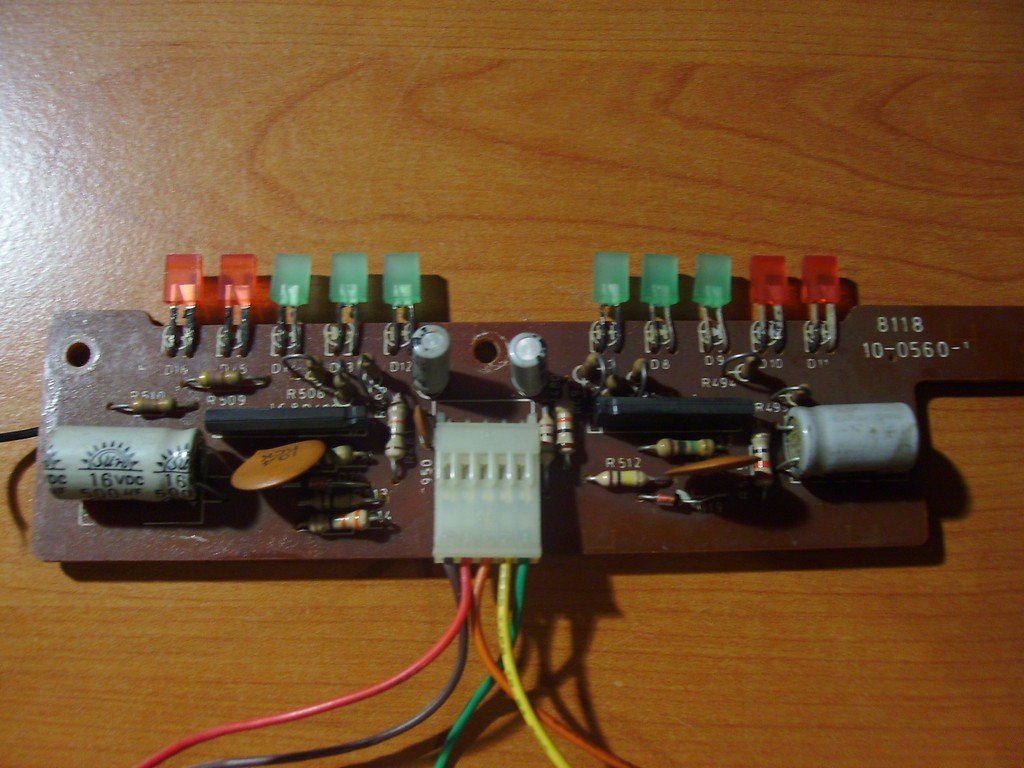 Ezt szeretném felhasználni ha lehet, úgy, hogy jel kimenetre kötve ugyanúgy üzemeljen, mint régen az erősítőben. A problémám, hogy van 5 db vezeték a nyáklapon, amit nemtudok, hogy hogyan kéne kötni. Arra rájöttem, hogy a két szélső vezeték: a szürke és a zöld a nyákon lévő plusz POWER ON led-et hajtja meg. Ezt amúgy egy változtatható feszültségü adapterrel hoztam ki belőle. 1-5 - 12 Voltig világít. Ha szinkronban ezzel rákötem a maradék 3om vezetéket, akkor 3 V felett felvillan az összes led, majd sorban lekapcsolnak és ha hagyom őket rákötve, akkor sem gyulladnak fel újra, mind addig amíg nem bontom és nem kapcsolom újra rájuk a feszültséget. Kipróbáltam, hogy hifi jel kimenetre rákötöttem a maradék 3om vezetéket, egyidőben az adapterrel de meg sem mozdultak.