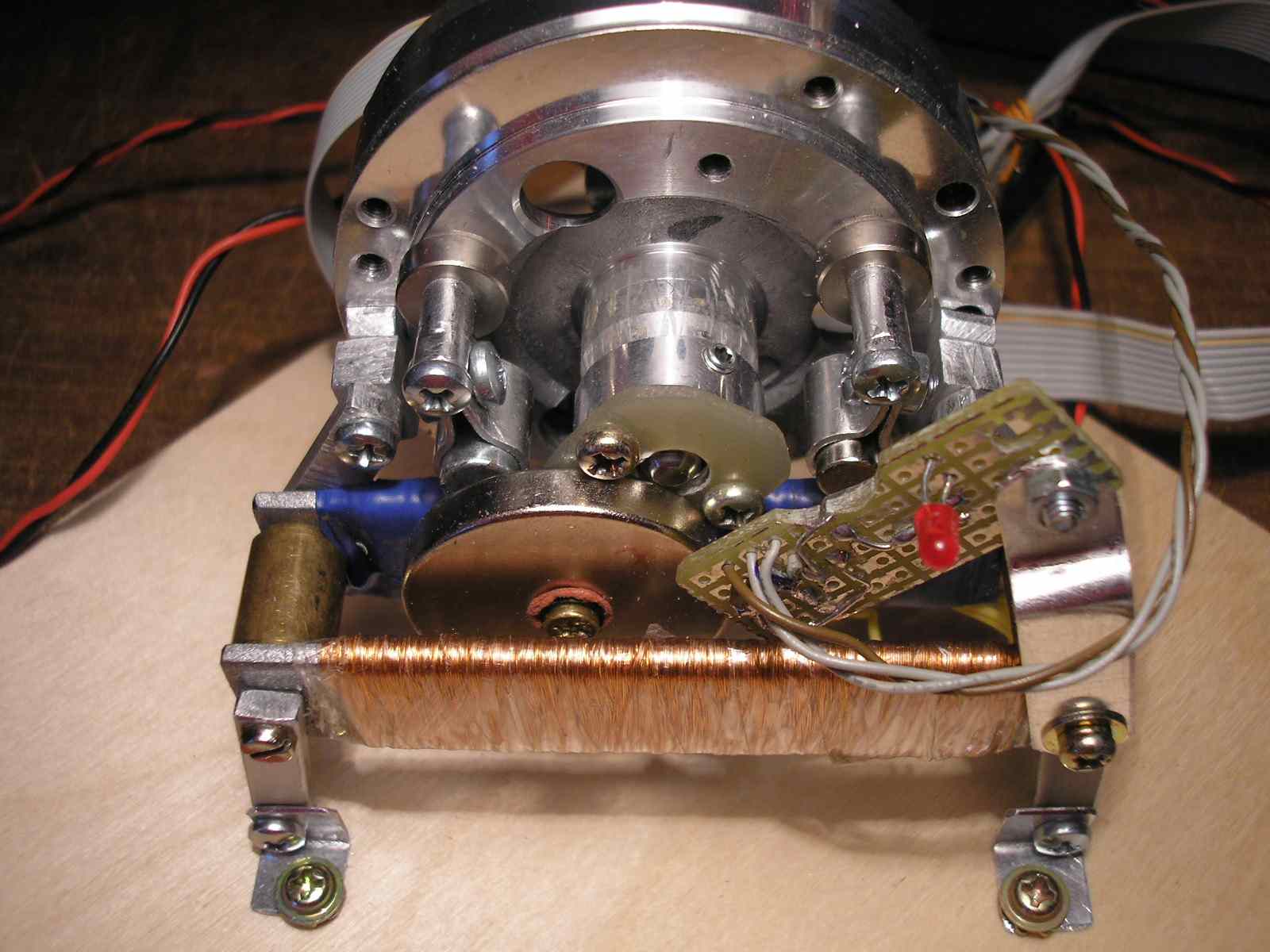 - Sikerült bevonni a fejlesztésekbe olyan aktív fórumtársat, (Hp41C személyében), ami után már szinte mindenre kiterjedő, főleg a programban történő átfogó módosítások következtek be. Ez azóta is folyamatosan változó, egyre tökéletesebb, korszerűbb lesz. (33 féle időkijelzés, hőmérséklet, páratartalom, oda-vissza kijelzés, DCF77 szinkron, PC soros port kapcsolaton keresztül az óra minden funkciója elérhető, módosítható). - Nem is tudom én sem hogyan is lett ez a topik ekkora terjedelmű, hiszen Wand óra építése valójában csak korlátozott számban történt. (Hp41C, Patexati, Panhard és jómagam), hogy csak a nagyobb tudású Wand clock megépítését reklámozzam. Az újabb Wand órák Patexati NYÁK tervei alapján készültek. Remélem, lesznek még építők, sőt a legmodernebb mágneses rugónélküli Wand óra kifejlesztése, (Patexati sikeres kísérletei alapján ez lett a nagy áttörés), forradalmian új mechanikai szerkezete, már szinte sohasem romolhat el, nem úgy, mint a rugólemezes elődjei. Magam is ezt a megoldást tartom a lehető legjobbnak Wand clock építéséhez. Már a ”második típusú” mágneses elrendezés kezdeti stádiumában vagyok, és ez is síkbeli kialakítással, Neodym gyűrűmágnesekkel fog működni, szintén videó fejmotor csapágyházának felhasználásával. Ez nagyon stabil működést tesz lehetővé, és igen könnyen el lehet készíteni, nem igényel komolyabb forgácsoló gépeket. A mechanikán egy asztali fúrógéppel minden szükséges művelet elvégezhető.