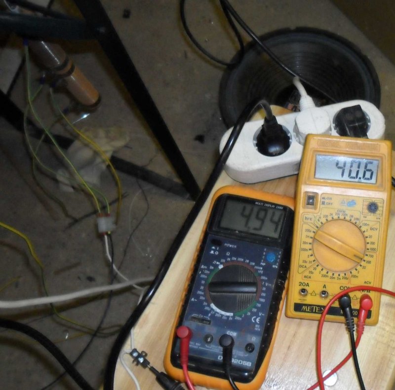 A multimétereimem a 7. képen a műterhelésen átfolyó feszültség a másikon az áram látható R=U/I 40.6/4.94=8.2 ohm P=u*I40.6*4.94=kb200W