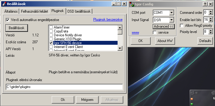 Ha találsz hozzá programot ami kezeli, az igorplug plugin a girderhez elvileg csak soros, usb, vagy ethernet-es változatot kezel, ezek mind fent vannak az eredeti Igor-féle honlapon, de amúgy létezik egészen sokféle ilyen táv-vevő projekt a neten , lehet, hogy találsz én nem nagyon emlékszek ilyenre mondjuk, ha találsz tedd itt közkinccsé, hátha másnak is jól jön