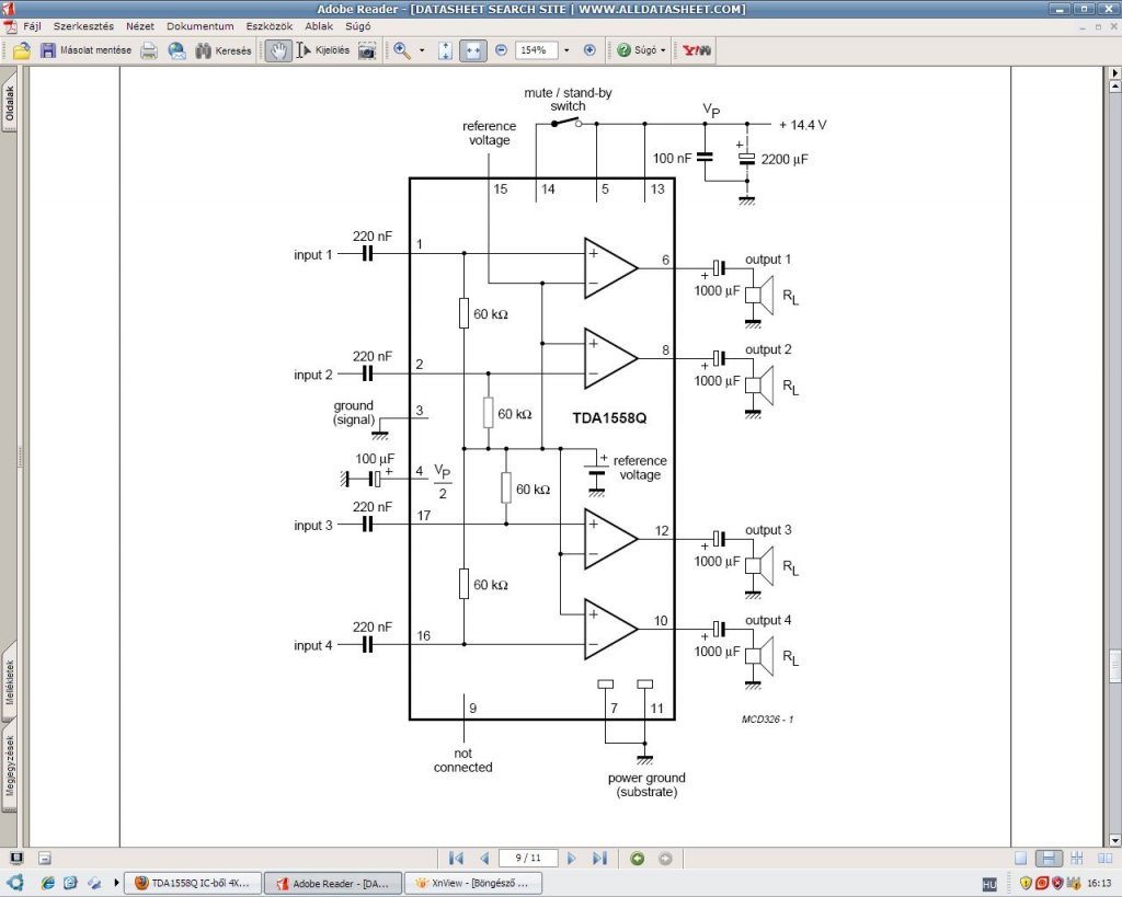 Hoppá! Titi válaszáról (amivel egyetértek) jutott eszembe ,hogy a 1558q nem hidalt fokozatai 2 Ohm on adják le a legjobb teljesítményt ,még a hidalt fokozatok 4Ohm -on. Ezt vedd számításba.