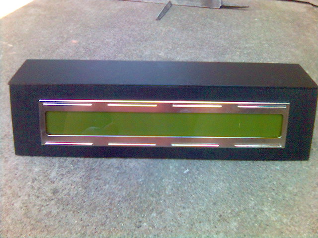 Egy LPT-s LCD-t követtem el, igaz már nagyon régen, de akkor másik kijelzővel, és nem volt bedobozolva. Nem nagy valami, de nem sok mindent csináltam az utóbbi időkben, legalább most lesz egy. Néhol "kilógnak" az oldallapok, de ez van. Köszönet a kijelzőért vaszil29-nek! Hátul van ugye az LPT csati, a kontrasztot állító poti, a háttérvilágítás ki/be kapcsolója, meg a tápcsati. A doboz kétoldalas bakelit nyákból van. Ja és a lényeg: saját program vezérli.