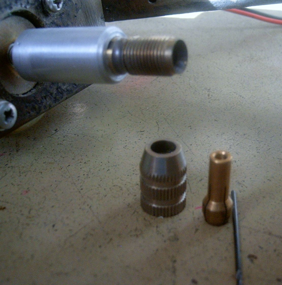 Ha egy csavar rögzíti és a tengely vékonyabb a furatnál akár egy tized milivel akkor ütni fog és a 0.8 mm-es fúró már törik is el