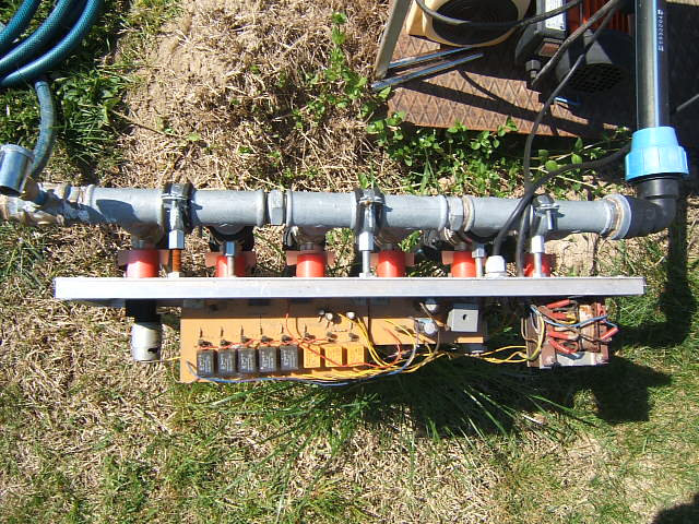 Én kb 4 éve csináltam öntöző rendszert azóta tökéletesen működik.Hat kör van, körönként 4 locsolófejel,a köröket golyósszelepel vezérlem amit kis átételes motorok nyitnak zárnak.A léptetést 4017-el oldottam meg az vezérli a reléket tranzisztoron keresztűl. A locsolófejeket esztergályossal csináltattam 3,5 báros nyomáson 6 méter átmérőjü kört locsol be.