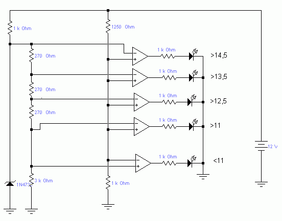Sziasztok szeretnék egy 12V-os aksi feszültség mérőt összedobni pl 5db led 10-14V ig mérje a feszültséget. A lehető legegyszerűbb kapcsolást szeretném megtalálni hozzá. Segítségeteket szeretném kérni eme kapcsolás megalkotásában. Előre is köszönöm.