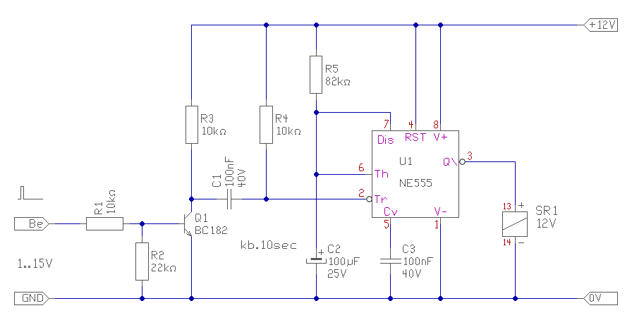 Van nekem egy 30 másodperces pozitív, 12 Voltos jelem. Azt kellene megcsinálnom, hogy amikor ez a jel megjelenik, egy relé behúzzon, de ne 30 mp-re, hanem 5 mp-re, és csak egyszer ez alatt a 30 mp alatt.