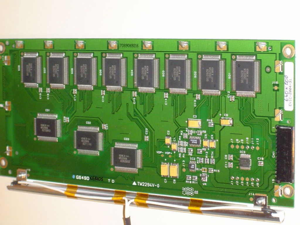 Hellosztok! Nemrég kaptam egy bontott fénymásolóból egy Konica gyártmányú LCD kijelzőt, és annyit sikerült kiderítenem róla, hogy grafikus. Viszont semmi bővebb nem áll sajnos rendelkezésemre. Van rajta egy tíz és egy hét kivezetésű tüskesor. Vezérlő IC négy van rajta, 3 db LC79401 és egy LC79431. Ezen kívül avn még egy OKI C7154 típusú IC. Ha bárkinek van ötlete a bekötésre vagy az AVR-rel való vezérlésére, kérem, ossza meg velem!