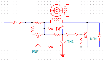 Idézet: „Nem látom értelmét a beépítendő alkatrészeknek..” Pedig egyszerű, és lehet, hogy egy dióda nem is elég, kettő sem elképzelhetetlen sorbakötve. Nézd meg a katalógusban a tirisztoron a feszültségesést, UTmax 1.7V, vagyis a tranzisztor bázisán ha a tirisztor kapcsolt, a legrosszabb esetben ez van. A dióda(-k) ezt leszedi. Mellesleg szerintem az egész áramkör nincs korrektül megtervezve, én ezt teljesen másképp csinálnám.